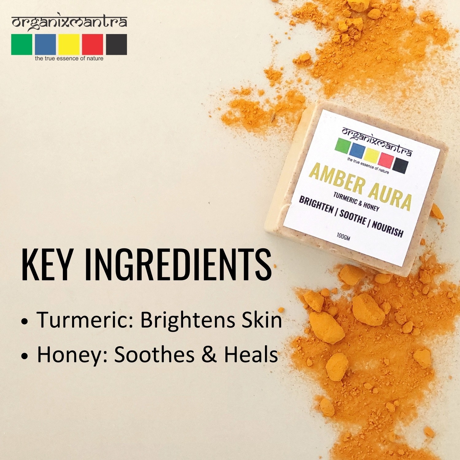 Discover the essence of natural skincare with Organix Mantra AmberAura Bath Soap. Our unique formula combines the nurturing properties of Turmeric and Honey with a luxurious blend of natural oils and milk. Each ingredient is carefully selected to ensure your skin receives the utmost care.