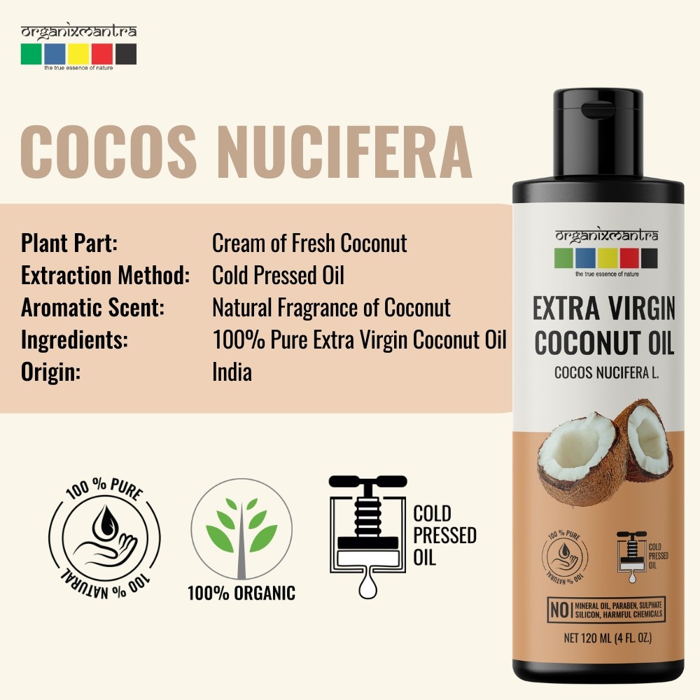 Organix Mantra Extra Virgin Coconut Oil, 100% Pure, Cold Pressed Organic Oil, 120ML