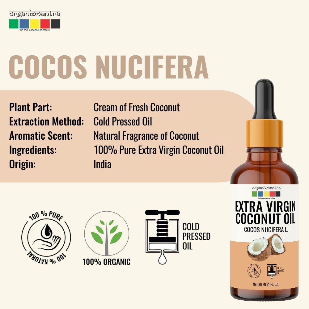 Organix Mantra Extra Virgin Coconut Oil is 100% Pure, Cold-pressed, and of Therapeutic Grade. This Carrier Oil is ideal for those with dry to extra dry skin as it has the ability to moisturize dry skin and reduce inflammation caused by itchy and flaky skin. Extra Virgin Coconut Oil is rich in antioxidants that fight free radicals and minimizes the signs of aging such as wrinkles and fine lines. Regular application of Extra Virgin Coconut Oil keeps the skin well hydrated, improves the elasticity, and firms up the skin