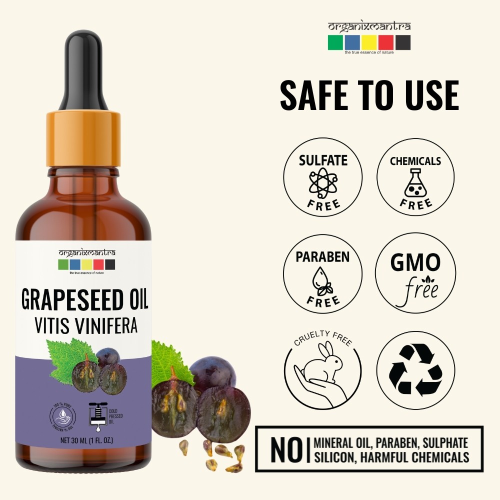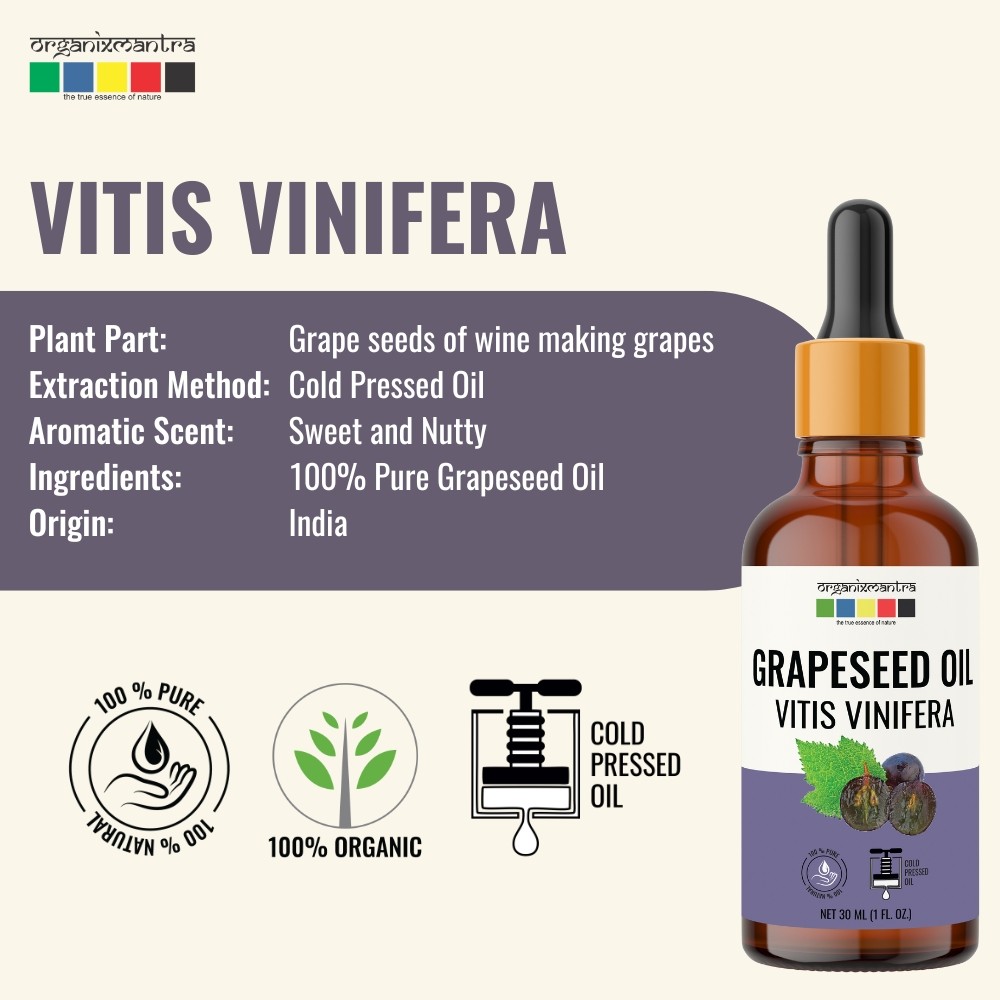 Organix Mantra Grapeseed Oil, 100% Pure, Natural & Cold Pressed Organic Oil, 30ML
