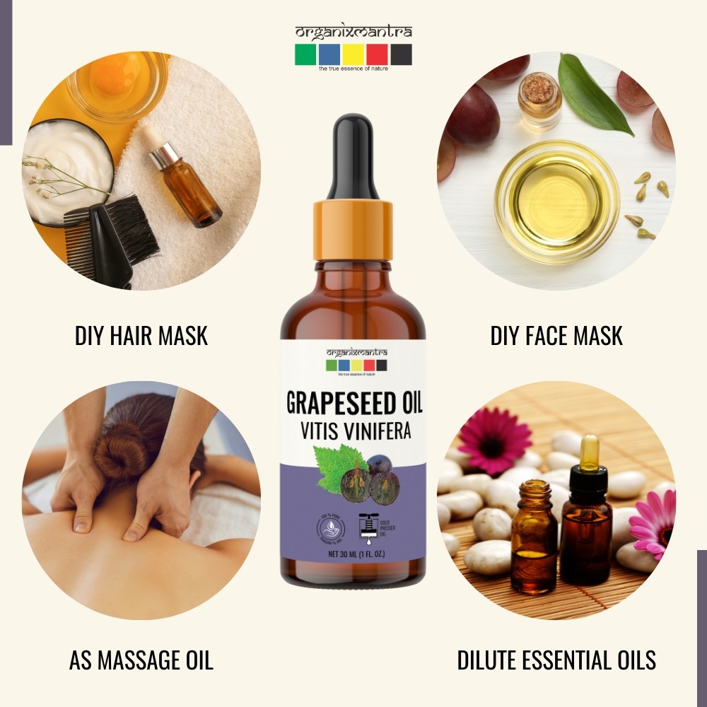 • Carrier Oil: Use Grapeseed Oil as a Carrier oil for your favorite essential oils in DIY beauty recipes.