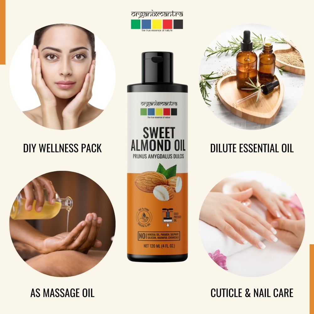 Organix Mantra Sweet Almond Oil, Cold Pressed Organic Oil, 120ML x 2