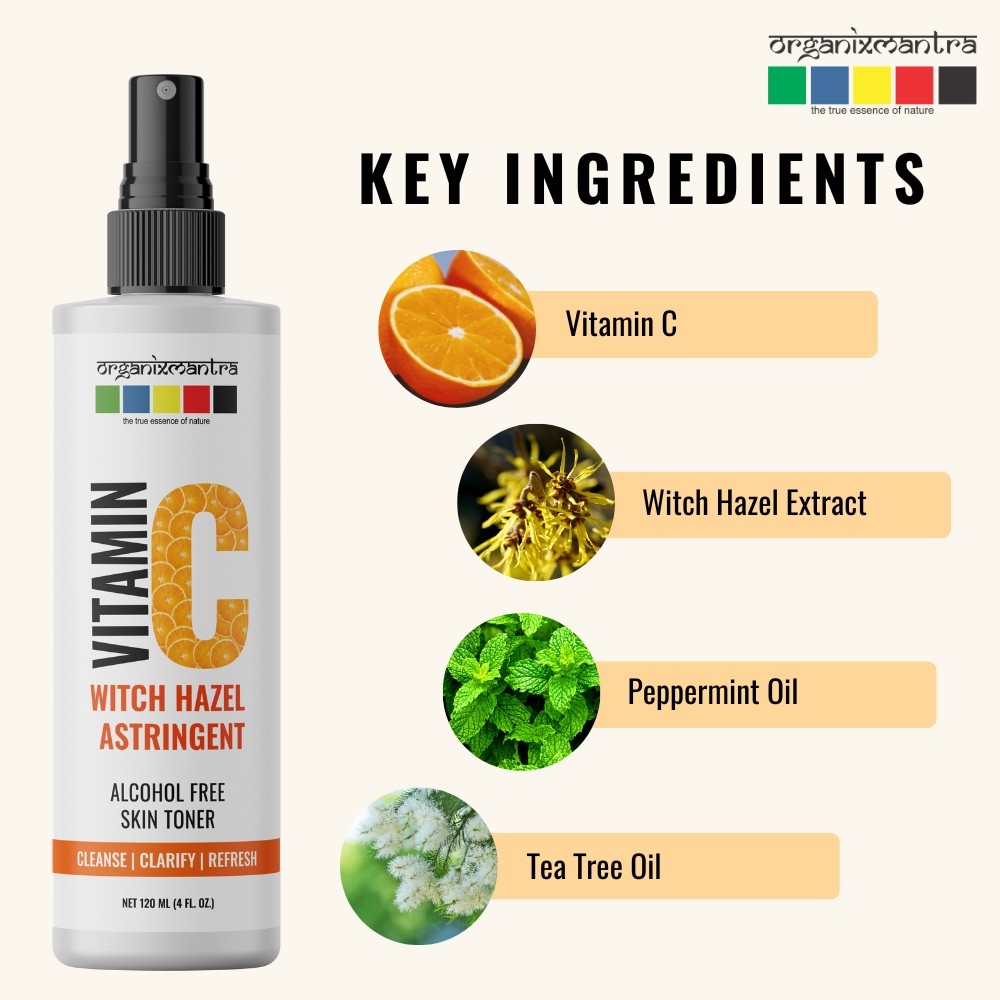 - NATURAL SKIN TONER – Tea Tree Witch Hazel Astringent may help tighten skin pores. Organic Peppermint present in the Astringent may help in slowing down the production of aging. It along with Vitamins C and E known as Natural Toning A