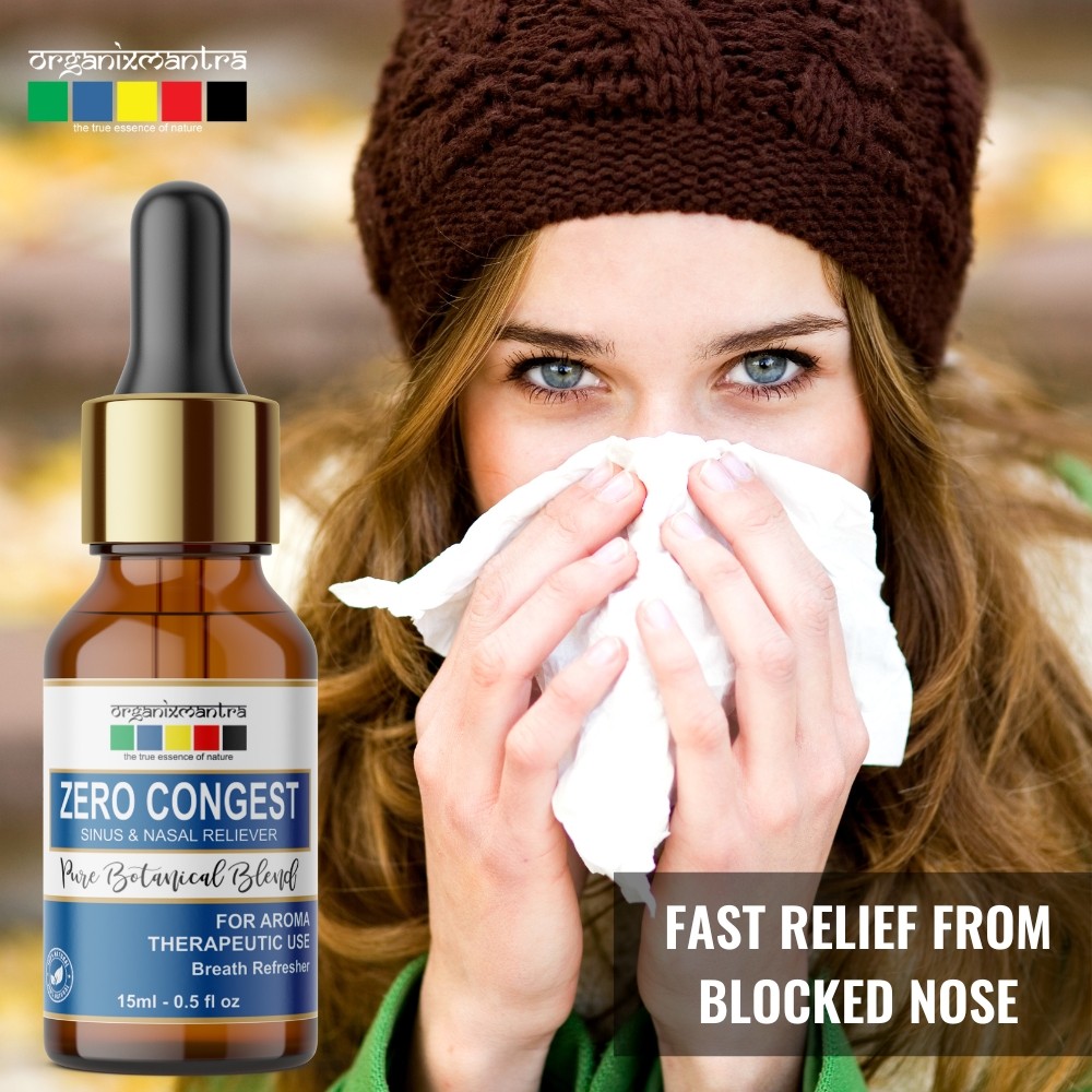 Aids in Sinus Relief: Tea Tree Oil, one of the main ingredients has anti-microbial properties is known to fight sinus. Inhaling the vapors of Zero congest helps to clear the blocked nose and nasal passageways.